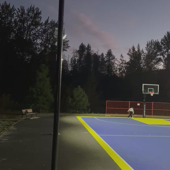6 units of BigM 1500W High Lumens Solar Flood Light installed to illuminate a basketball court at Castlegar, BC